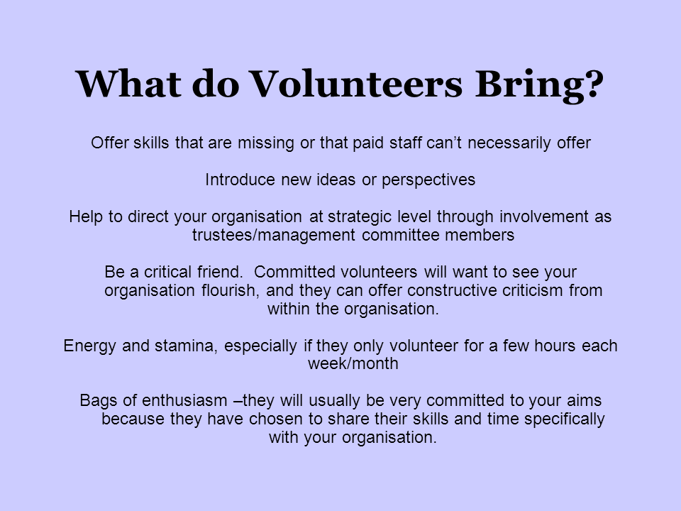 In the training I do, discussion can arise when we’re looking at volunteer motivations. “Why DO people get involved in the first place…?” is a question I ask a lot. We play bingo with volunteer motivations, we look at research, we tell stories of ours and others’ experiences, we unpick what it is that makes people get involved and we look at how understanding this is the key to getting the best for everyone out of volunteering.